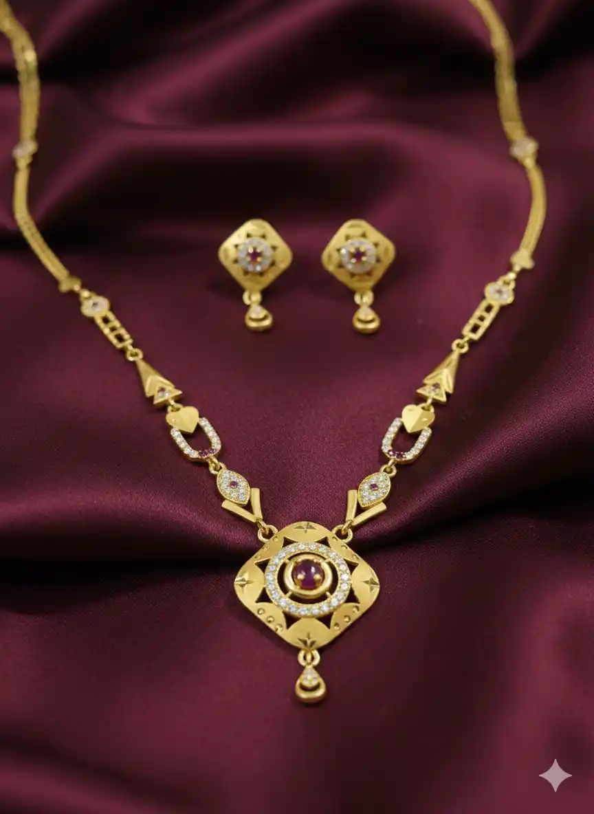 Micro Gold Plated AD Diamond Studded Forming Square Necklace with Earrings for Women