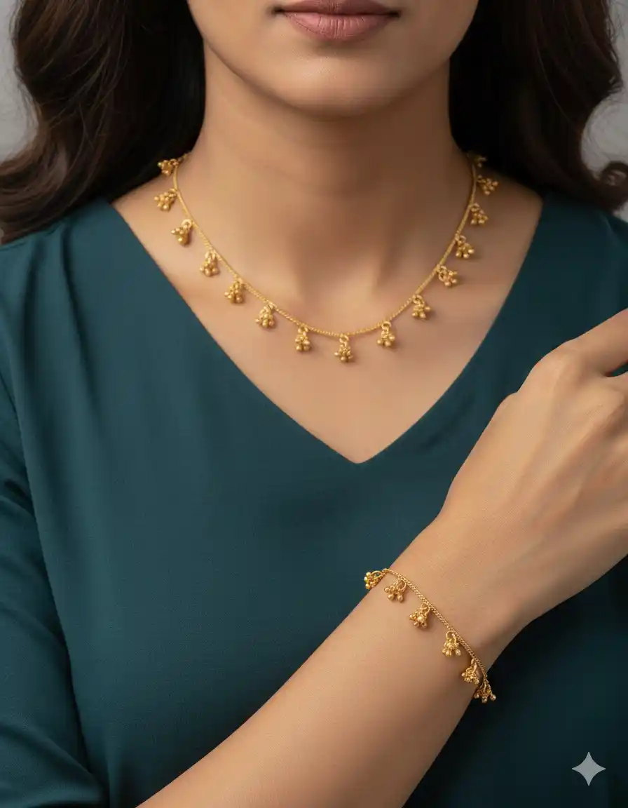 micro gold plated ad diamond studed fancy pearl drop fancy 18 inches chain and bracelet combo