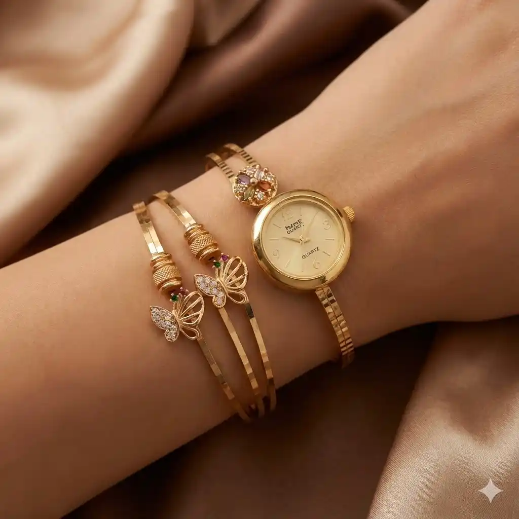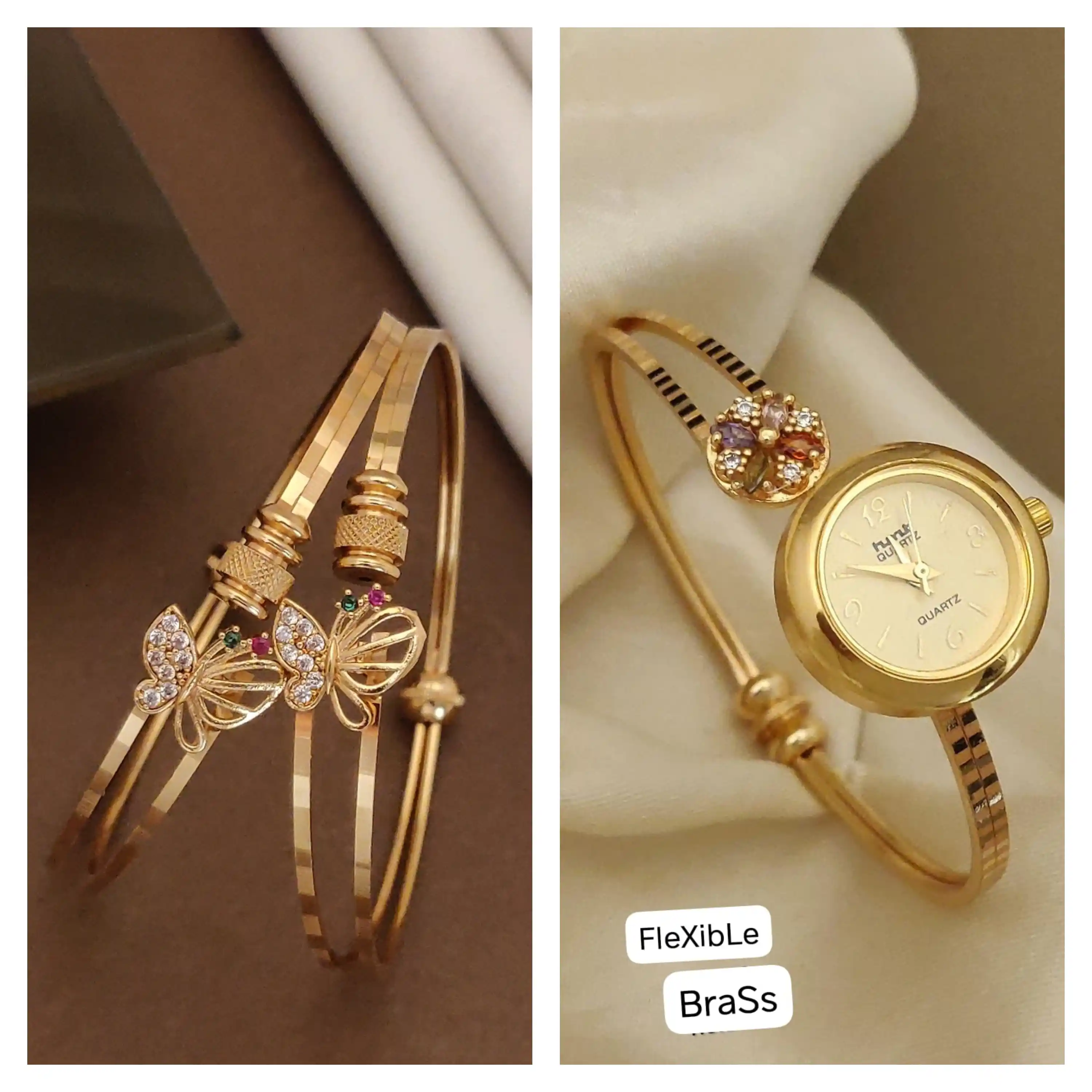 micro gold plated ad diamond studed fancy butterfly kadli and watch combo