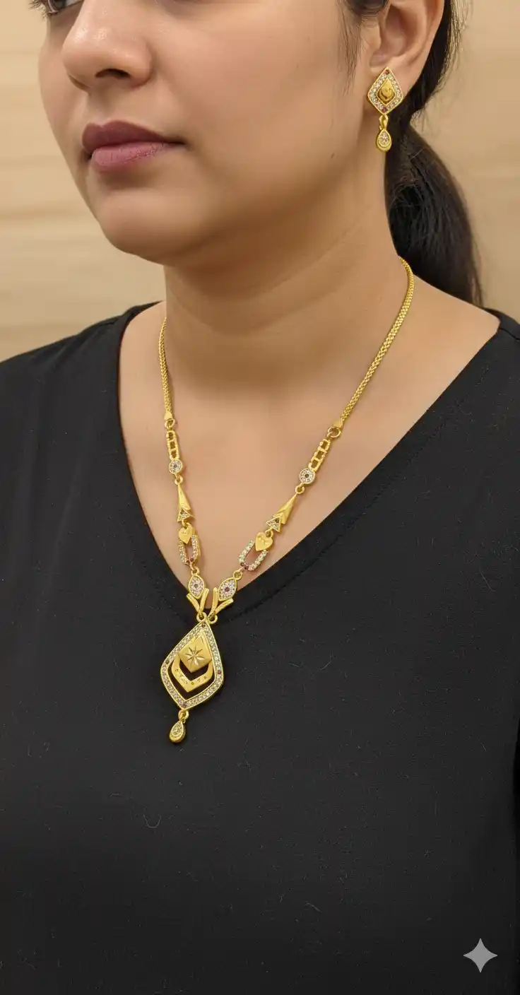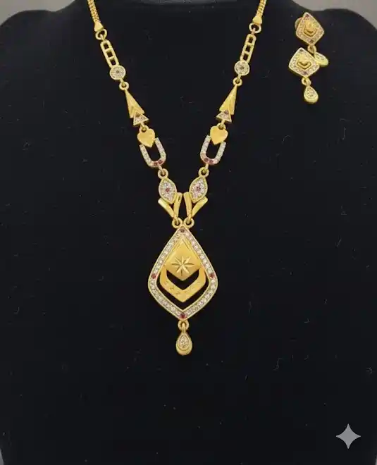 micro gold plated ad diamond studed fancy oval necklace with earing