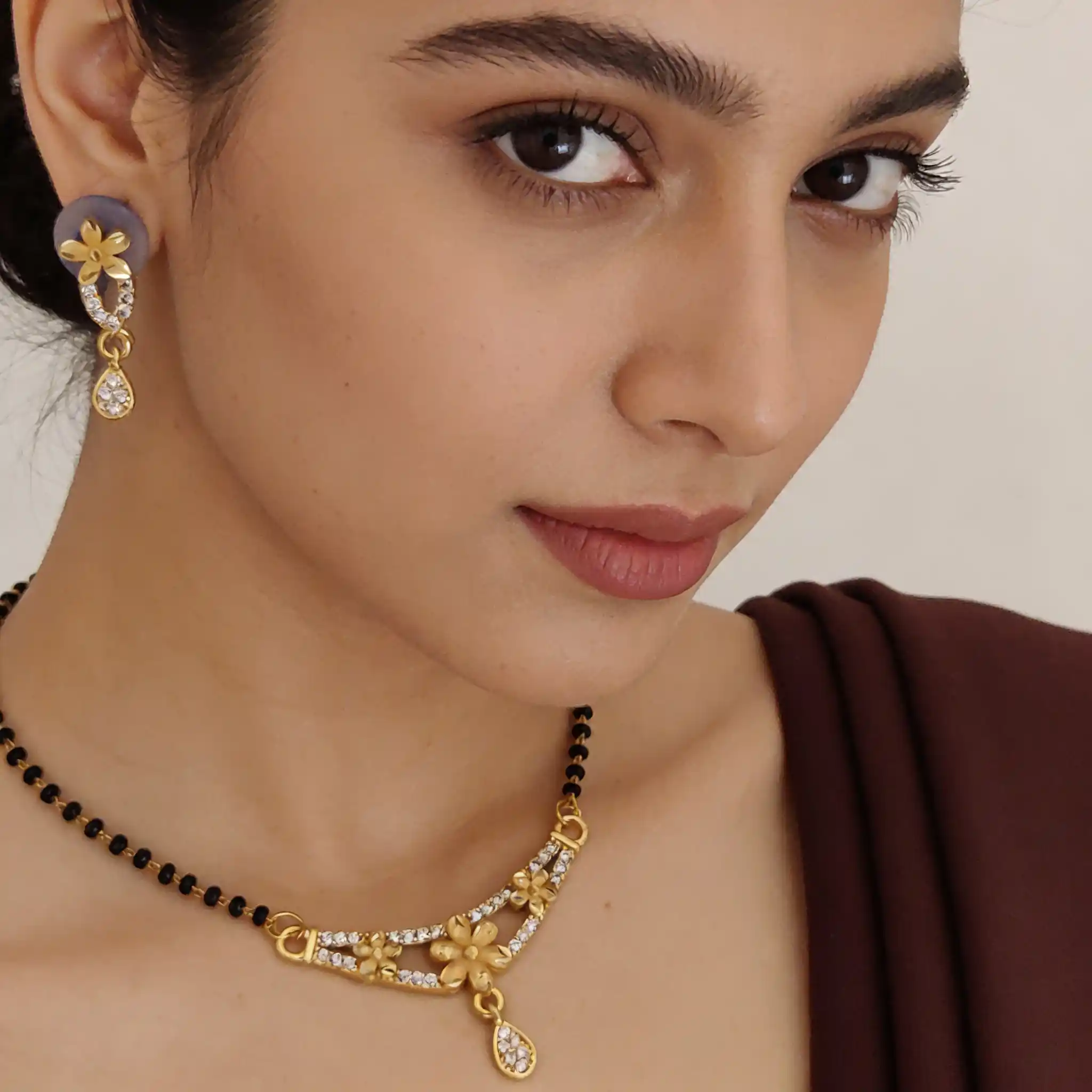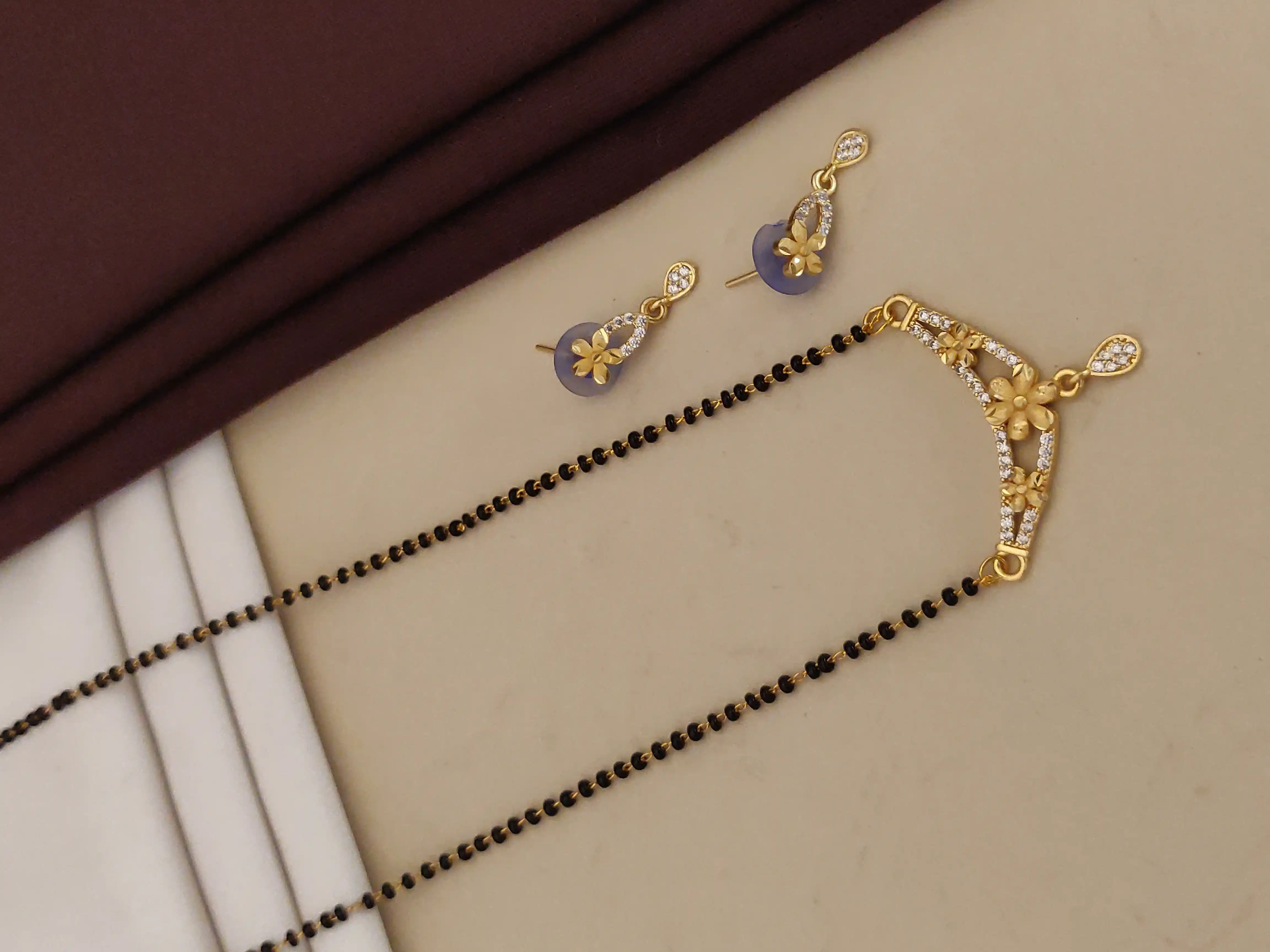 Forming ad diamond high gold plated flower mangalsutra 3 months guarantee