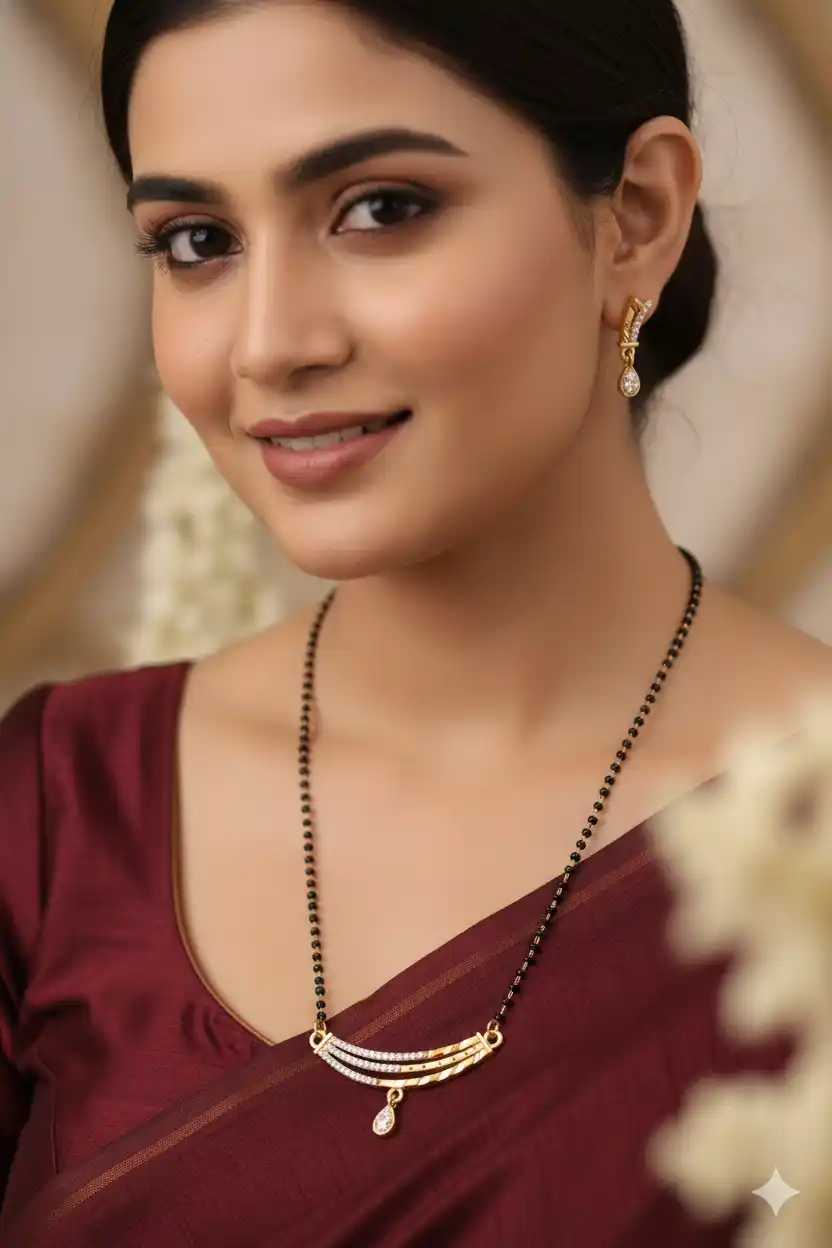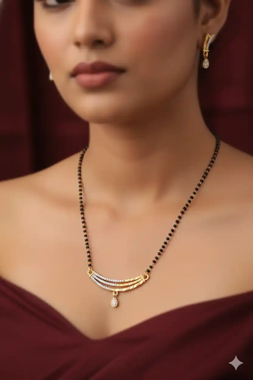 Forming ad diamond high gold plated 3line mangalsutra 3 months guarantee