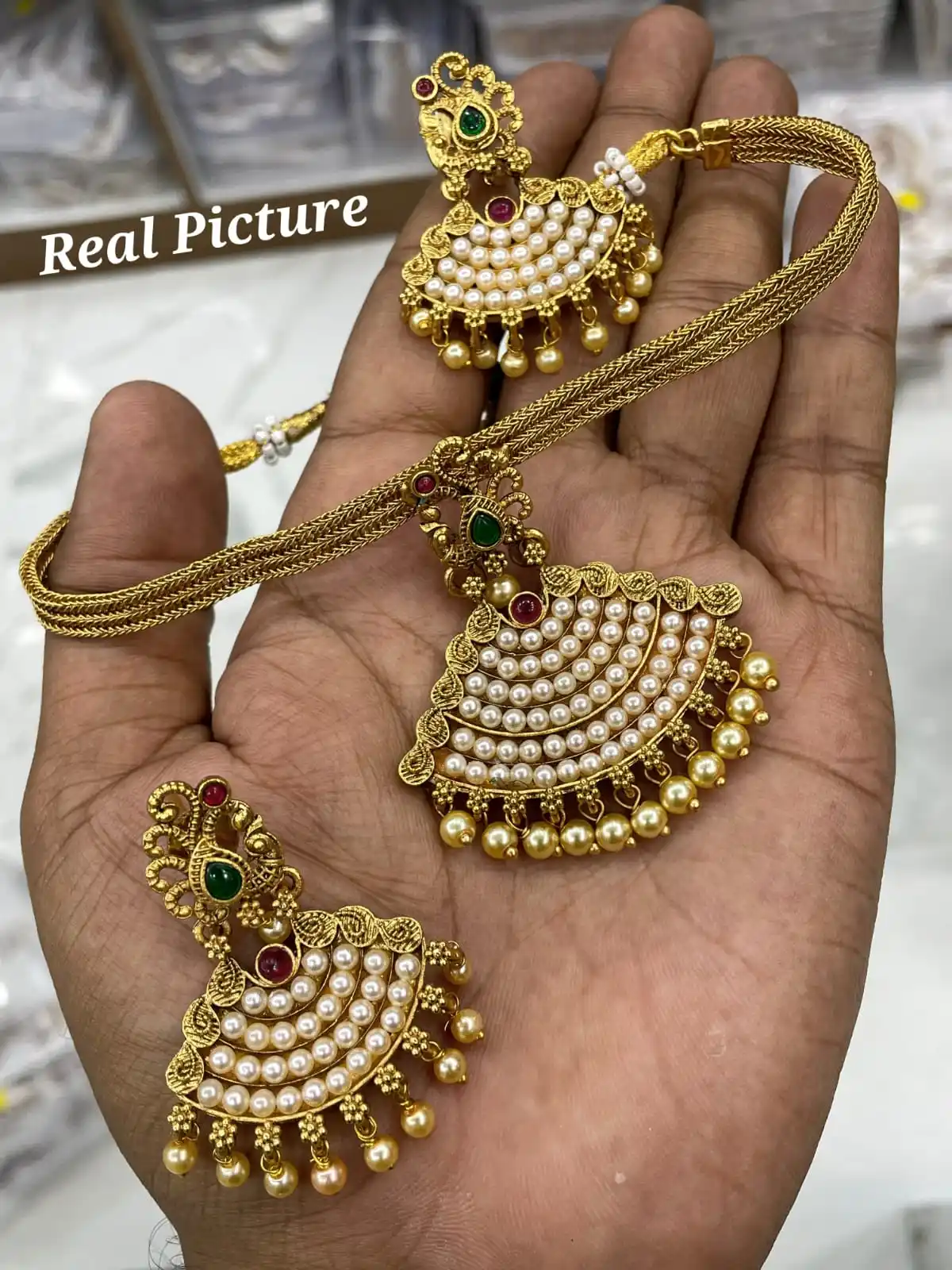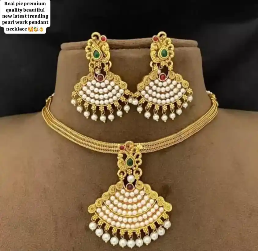 Antique Finish Stunning Elegant Pearls And Ruby Studded Women's Ethnic Wear Necklace With Earrings