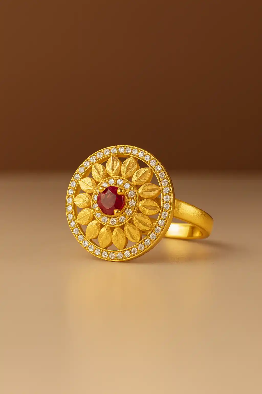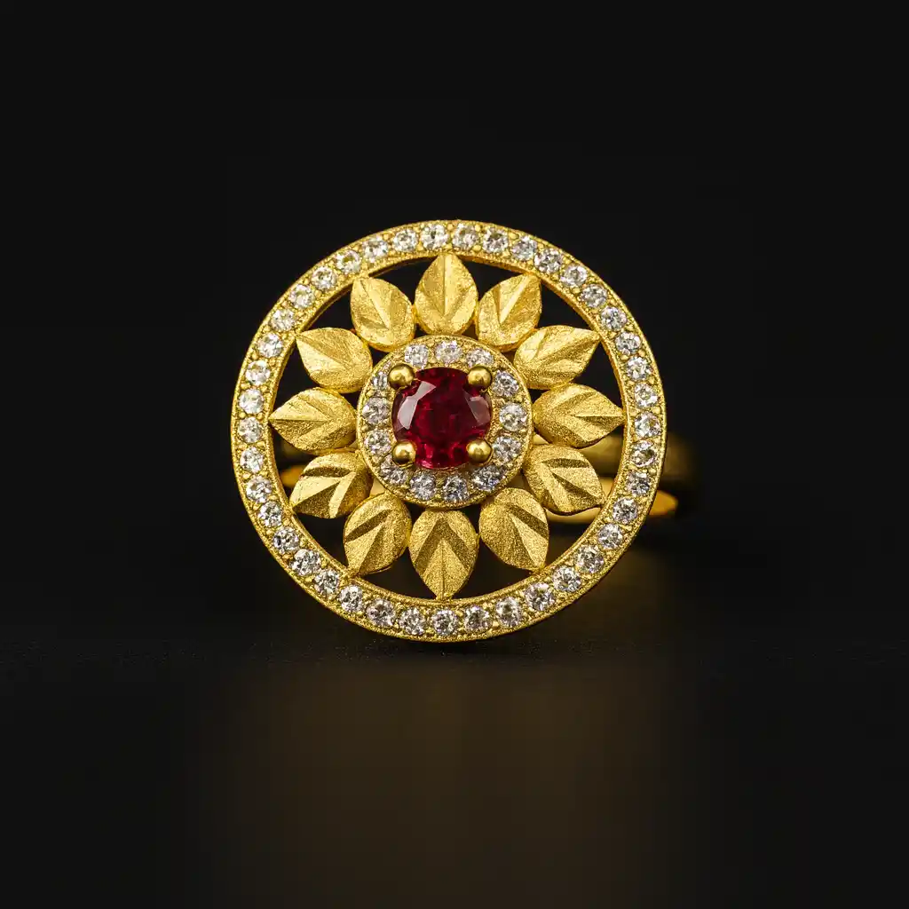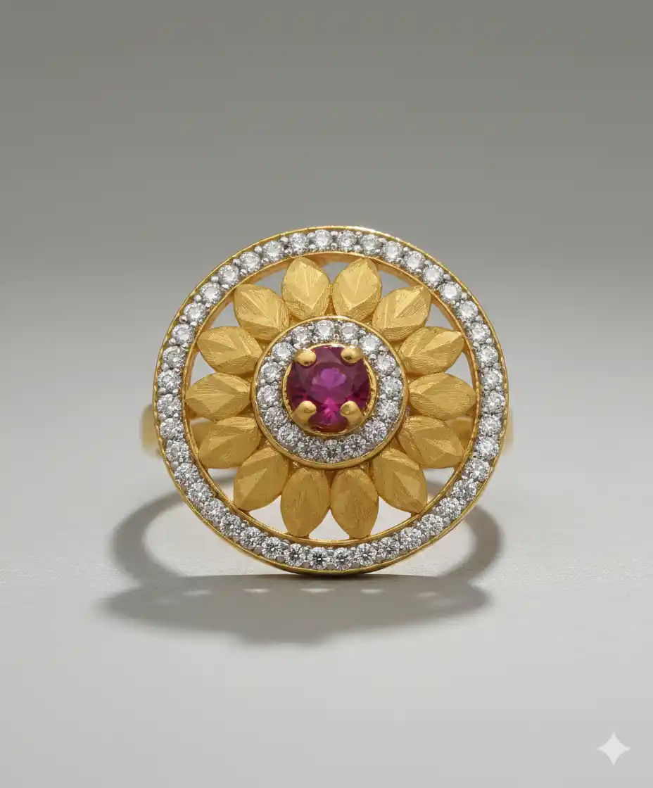 Micro Gold Plated AD Diamond Studded Fancy Sunflower Design Adjustable Finger Ring