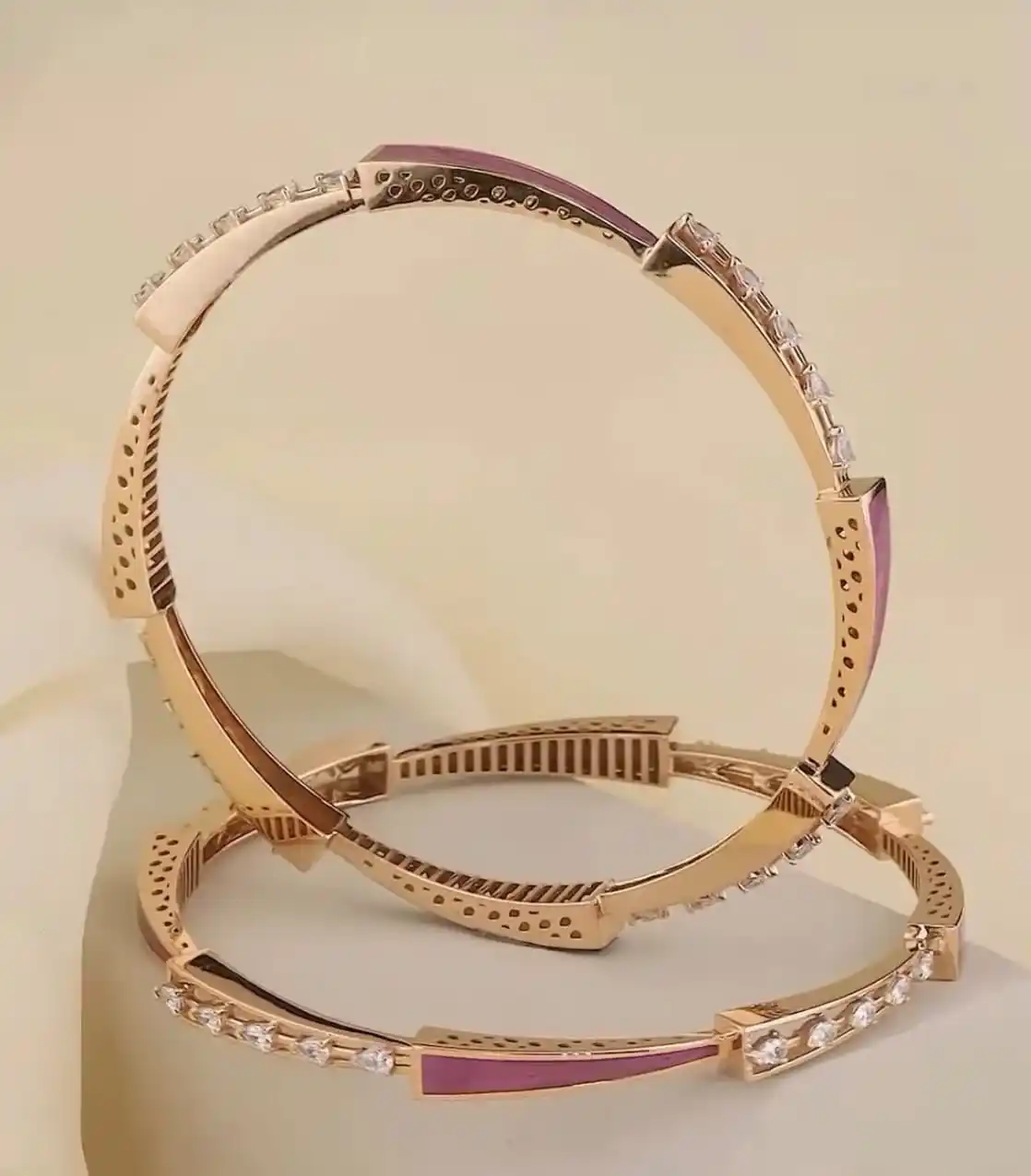 Rose Gold Plated AD Diamond Meenakari 2 Pcs Bangles for Women