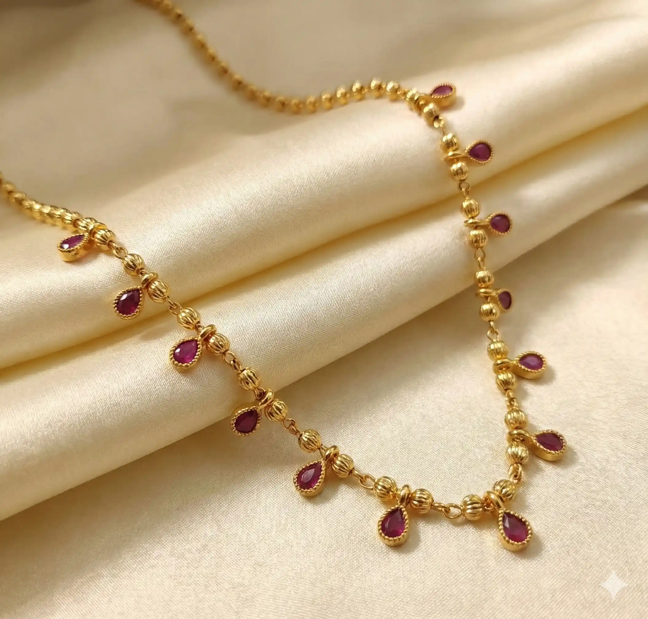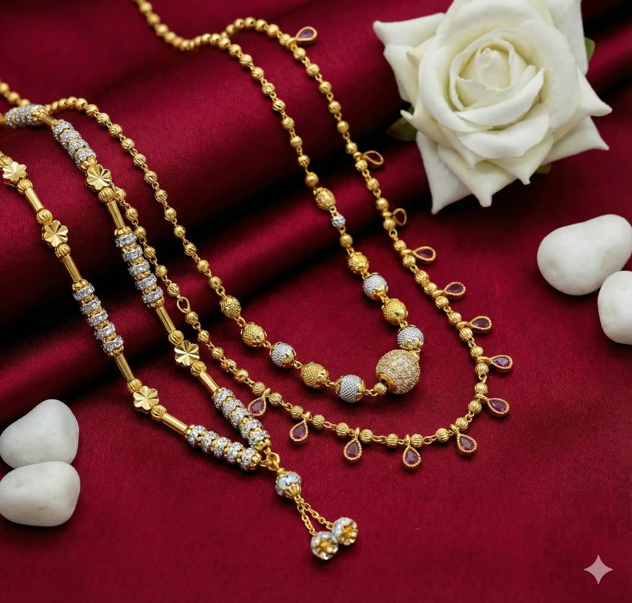Micro Gold Plated AD Diamond Studded Beaded Short Chain Combo of 3 for Women