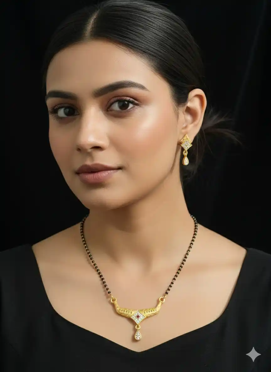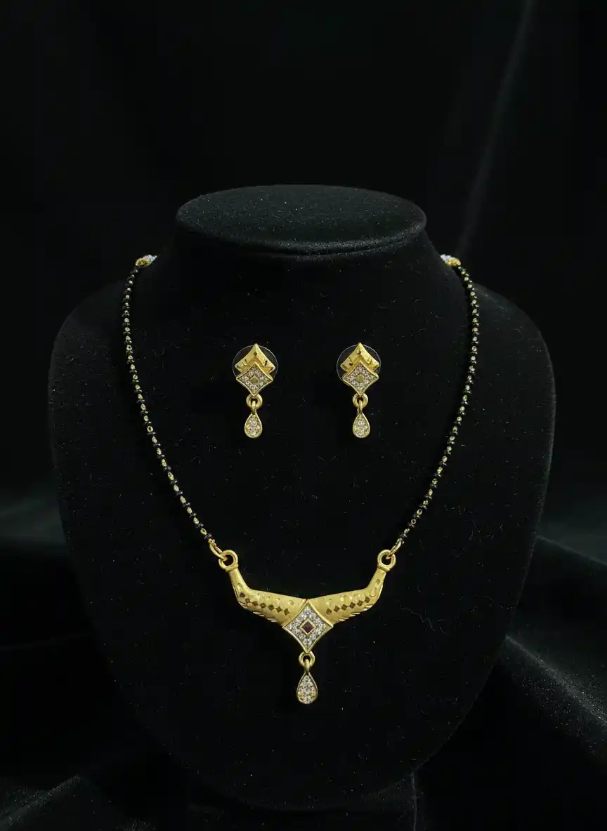 micro gold plated ad diamond studed fancy square mangalsutra with earring