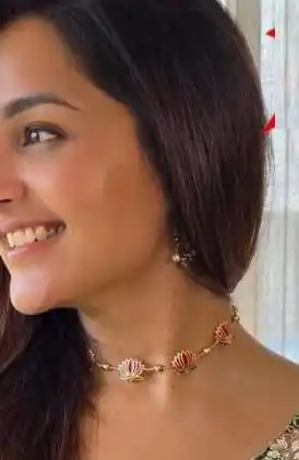 High Gold Plated Meena Work Pink Lotus Necklace with Earrings for Women