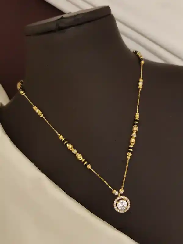 micro gold plated ad diamond studed fancy round mangalsutra