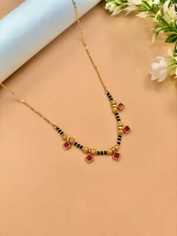 Gold Plated Ruby Stone Daily Wear Square Design 18' Mangalsutra