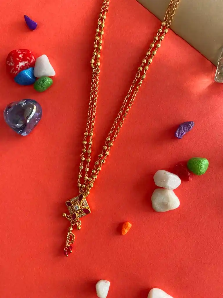 A Stunning High Gold Plated Ad Diamond Ruby Stone Fancy Square Chain