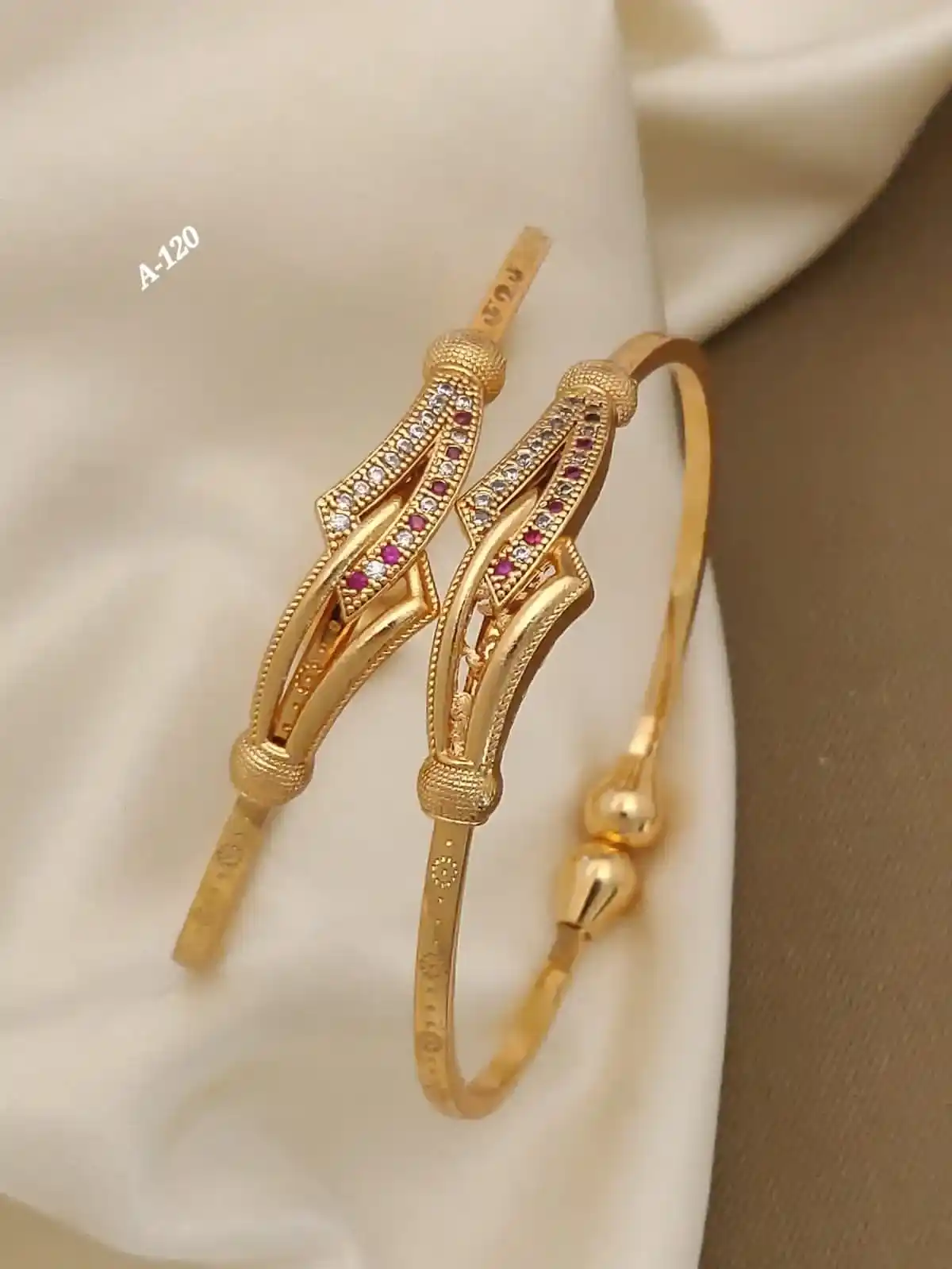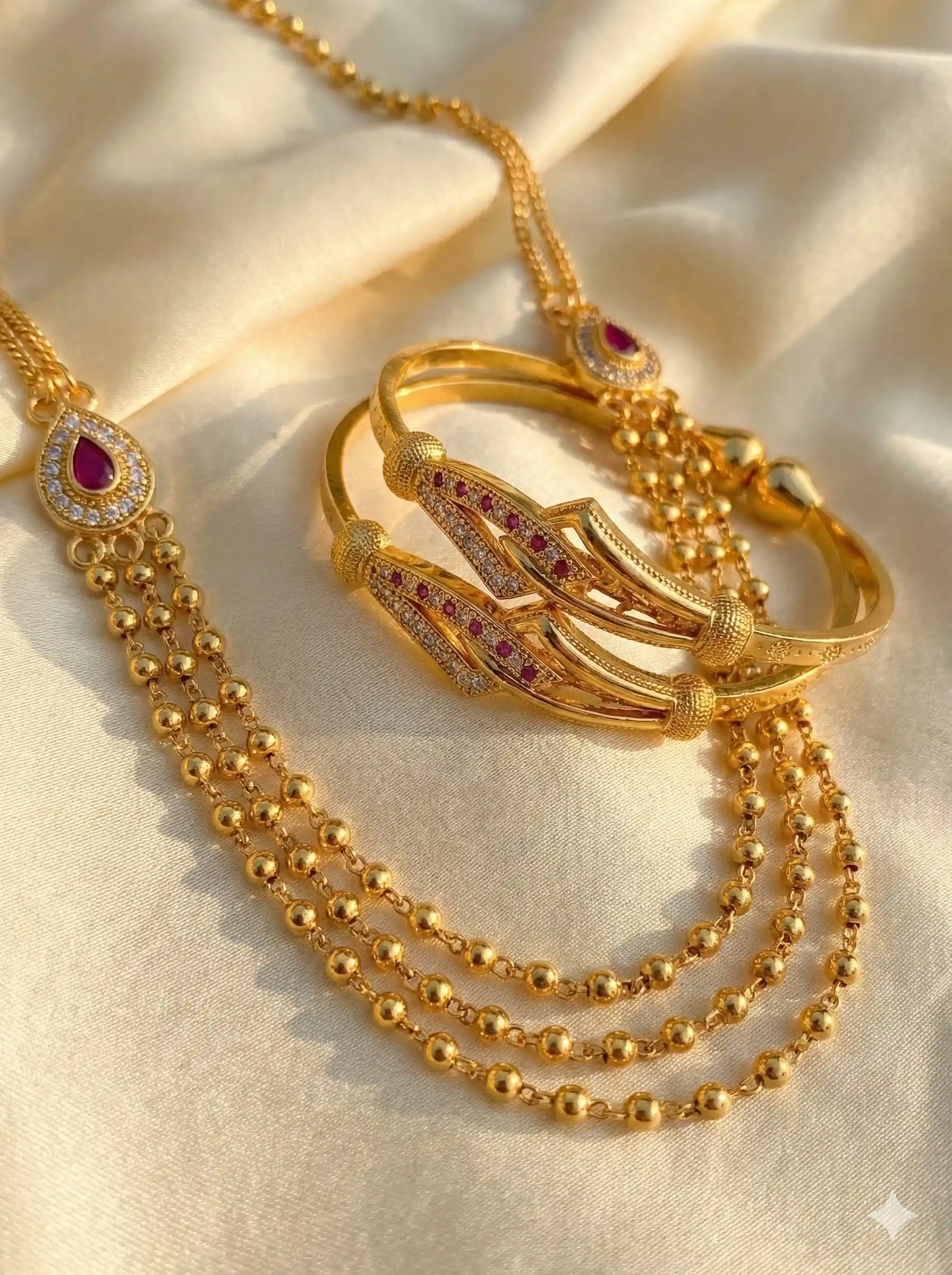 Elegant Ruby Drop Gold-Plated 3 Layer Diamond Chain & Bangle Combo