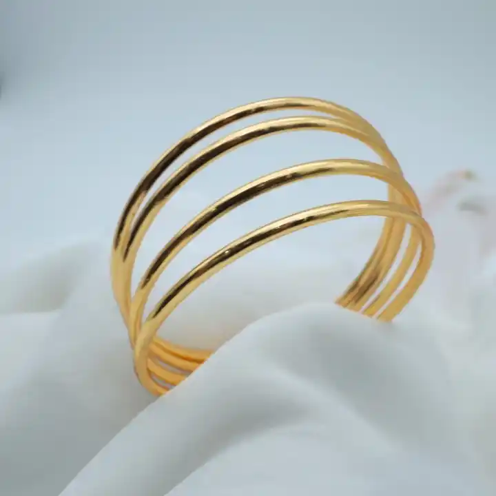 Casual Wear Micro Gold Plated 4 Pcs Palin Bangle For Girls And Women